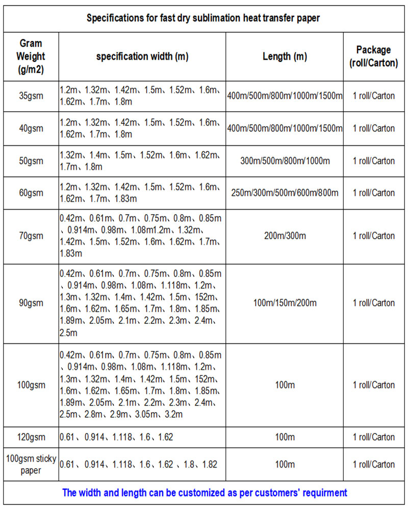 Find The Competitive Manufacturer Wholesale Price For Instant Sublimation Heat Transfer Paper,GSM:35g/40g/50g/60g/70g/90g/100g,Customized.Size:A3/A4/0.914m/1.118/1.2m/1.52m/1.62m/1.7m/1.8m/2m/3m,etc.